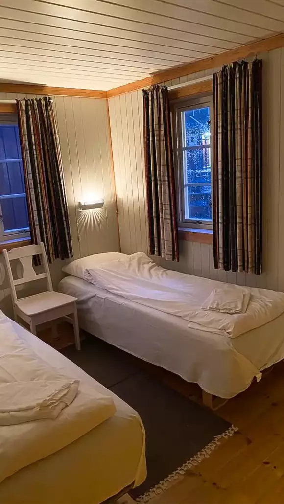 Sie wohnen im komplett ausgestatteten Rorbu mit Küche, Bad und TV. Die Unterkunft ist für bis 4 Personen geeignet und mit 2 Schlafzimmern mit je 2 Einzelbetten ausgestattet.